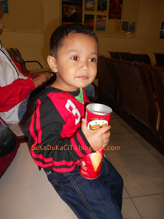 So, berangkatlah dulu kami 3 beranak ke KL...flight jam 8.20am...yang ku sangkakan adalah 8.20 malam...careless betul aku nih...mintak tolong aunt hantarkan ke airport...masa ni abang reezq sporting lagi...nampak dia enjoy la....walaupun tiap kali tanya dia nak naik kapal terbang tak...confirm dia jawab tak nak...hahahahah....